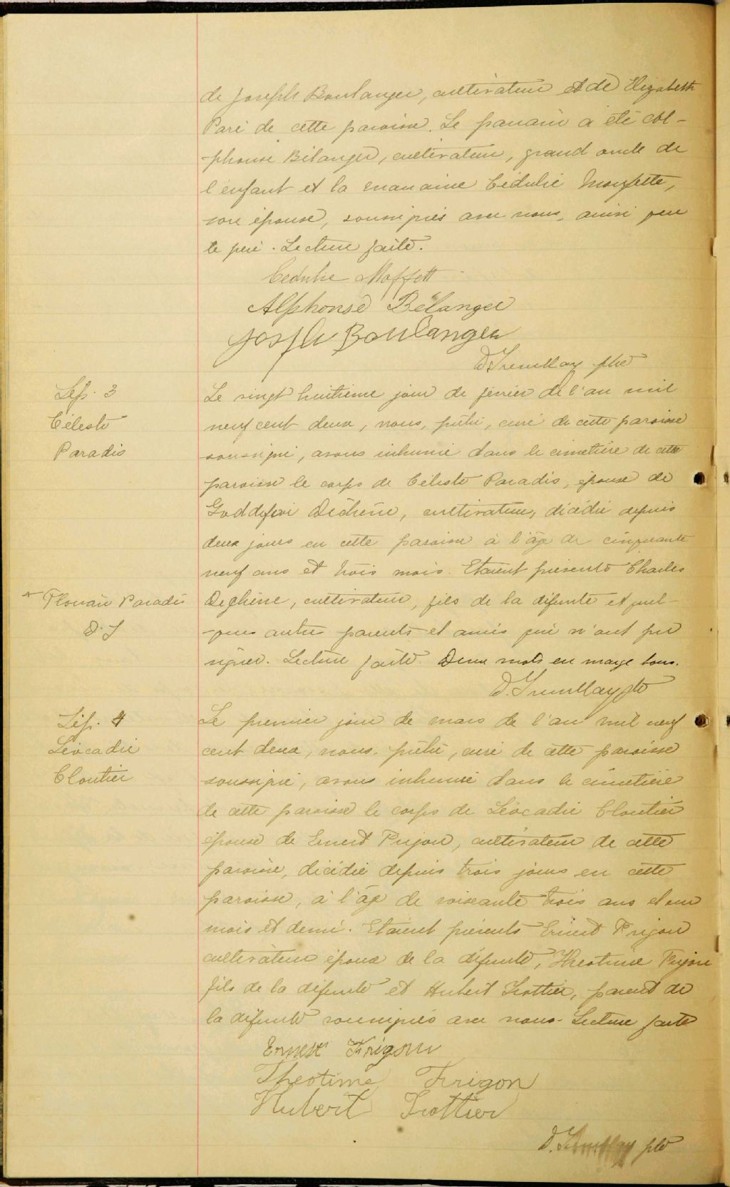 Cette série regroupe les registres originaux de l'état civil, lesquels contiennent les enregistrements de baptêmes, de mariages et de sépultures consignés par le curé ou son représentant au cours de la période concernée par les documents.Outre les renseignements à caractère généalogique que nous pouvons y puiser, cette série peut constituer une source documentaire importante pour toute étude-statistique ou comparative sur les conditions de vie à différentes époques (mortalité infantile, espérance de vie) ou pour toute recherche portant sur l'occupation des terres (lieu de résidence), sur le mode vie (métiers et professions, statut et âge des époux), sur les classes sociales (titres des parties impliquées, témoins/amis/parents présents lors du mariage), sur des événements spéciaux (quelques mentions dans les sépultures) et sur des sujets à incidence médicale tels les maladies héréditaires (cause du décès)
