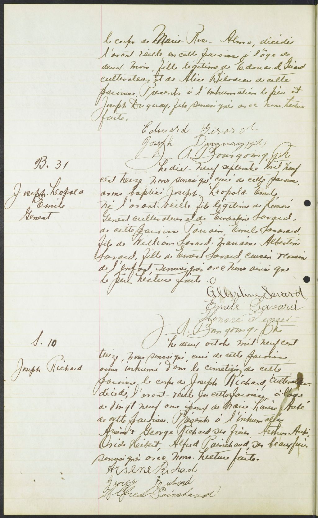 - Cette série regroupe les registres originaux de l'état civil, lesquels contiennent les enregistrements de baptêmes, de mariages et de sépultures consignés par le curé ou son représentant au cours de la période concernée par les documents.Outre les renseignements à caractère généalogique que nous pouvons y puiser, cette série peut constituer une source documentaire importante pour toute étude-statistique ou comparative sur les conditions de vie à différentes époques (mortalité infantile, espérance de vie) ou pour toute recherche portant sur l'occupation des terres (lieu de résidence), sur le mode vie (métiers et professions, statut et âge des époux), sur les classes sociales (titres des parties impliquées, témoins/amis/parents présents lors du mariage), sur des événements spéciaux (quelques mentions dans les sépultures) et sur des sujets à incidence médicale tels les maladies héréditaires (cause du décès)