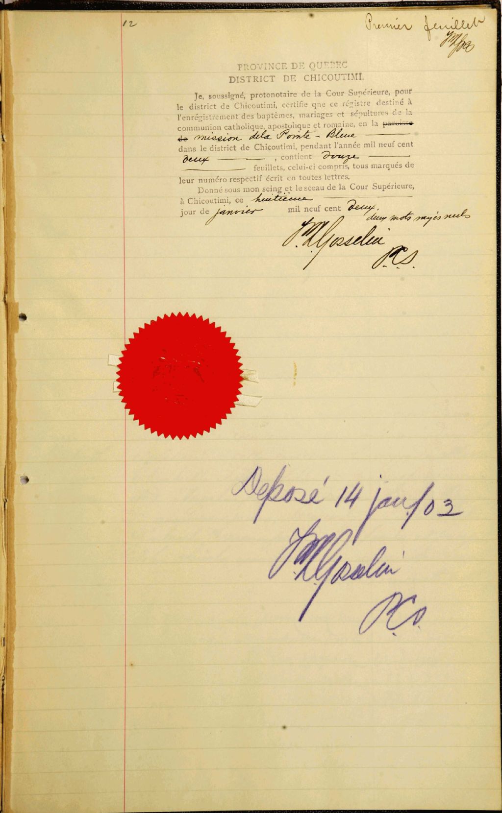Saint-Charles-Borromée, 1899-1922, Archives nationales à Saguenay, Fonds Cour supérieure. District judiciaire de Roberval. État civil, (02C,CE202,S17).