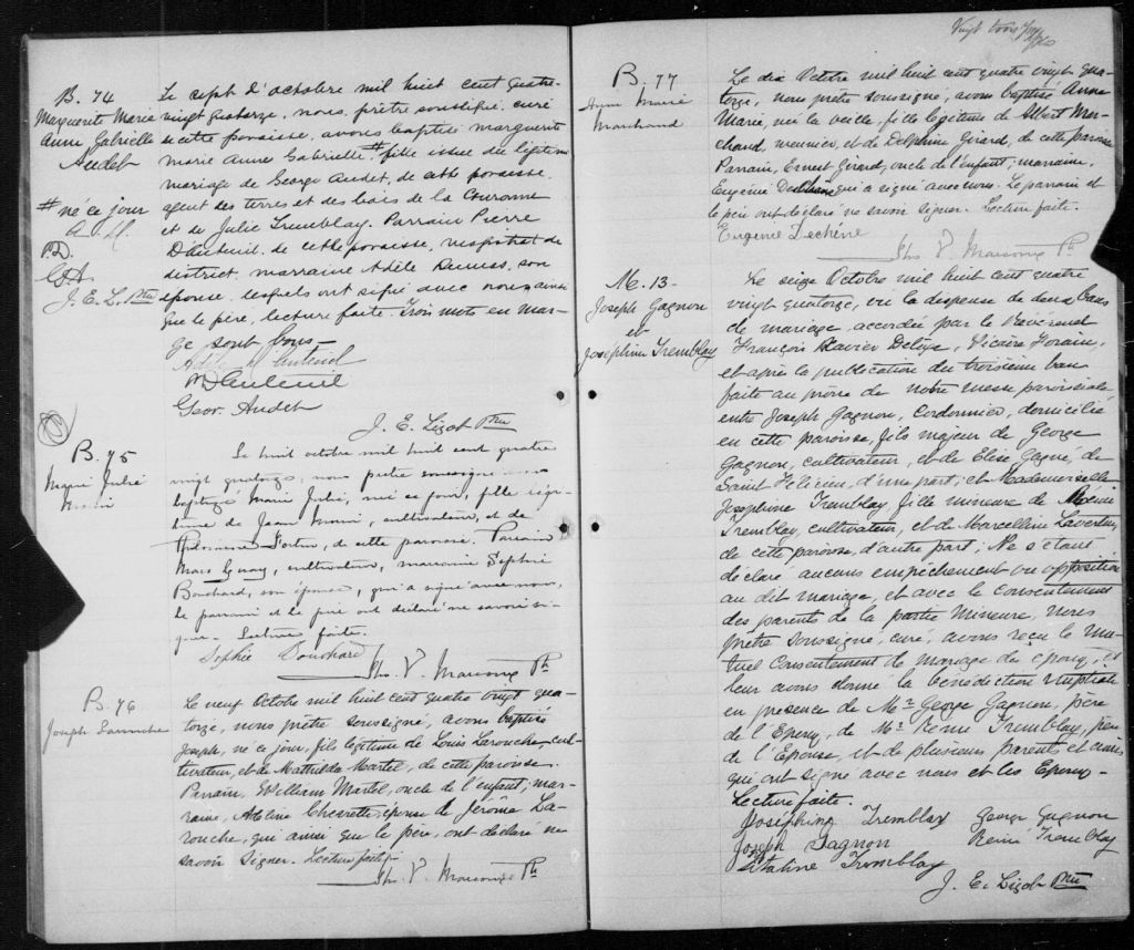 Notre-Dame-du-Lac-Saint-Jean, 1860-1922, Archives nationales à Saguenay, Fonds Cour supérieure. District judiciaire de Roberval. État civil, (02C,CE202,S2).