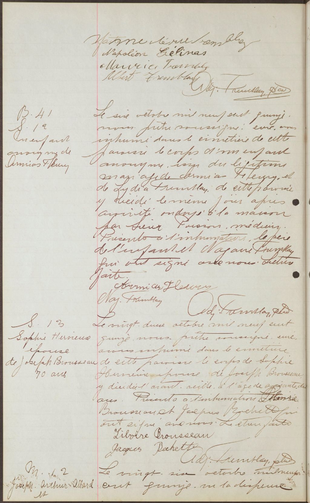 - Cette série regroupe les registres originaux de l'état civil, lesquels contiennent les enregistrements de baptêmes, de mariages et de sépultures consignés par le curé ou son représentant au cours de la période concernée par les documents.Outre les renseignements à caractère généalogique que nous pouvons y puiser, cette série peut constituer une source documentaire importante pour toute étude-statistique ou comparative sur les conditions de vie à différentes époques (mortalité infantile, espérance de vie) ou pour toute recherche portant sur l'occupation des terres (lieu de résidence), sur le mode vie (métiers et professions, statut et âge des époux), sur les classes sociales (titres des parties impliquées, témoins/amis/parents présents lors du mariage), sur des événements spéciaux (quelques mentions dans les sépultures) et sur des sujets à incidence médicale tels les maladies héréditaires (cause du décès)