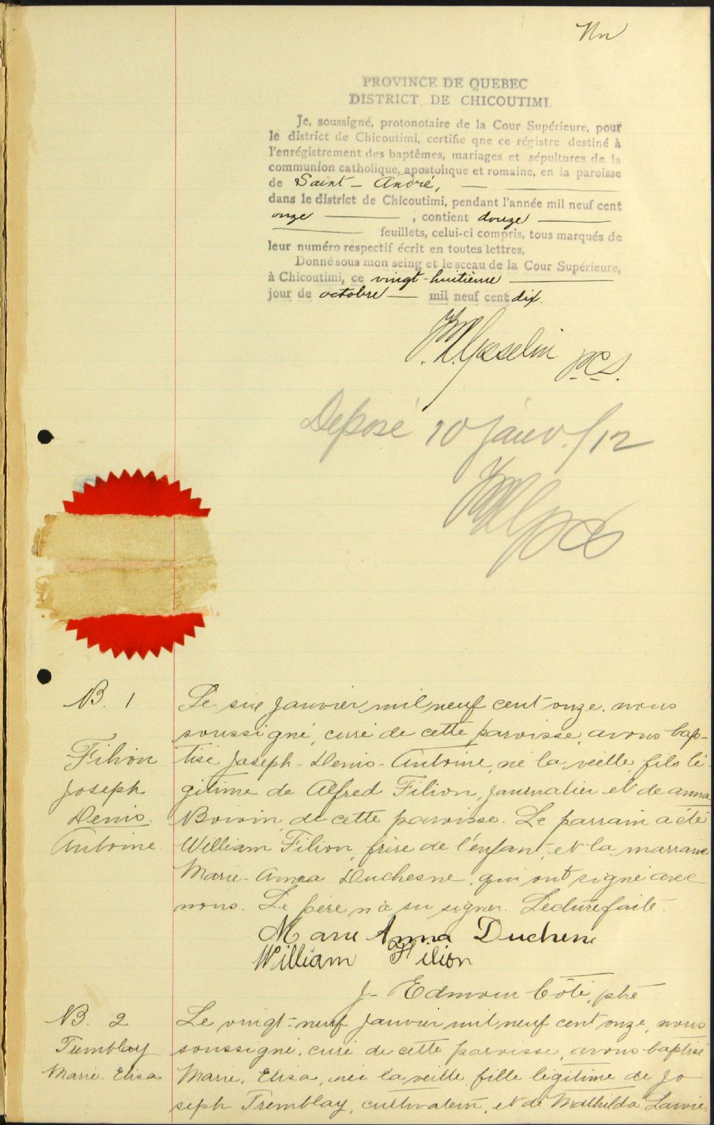 Saint-André, 1898-1922, Archives nationales à Saguenay, Fonds Cour supérieure. District judiciaire de Roberval. État civil, (02C,CE202,S23).