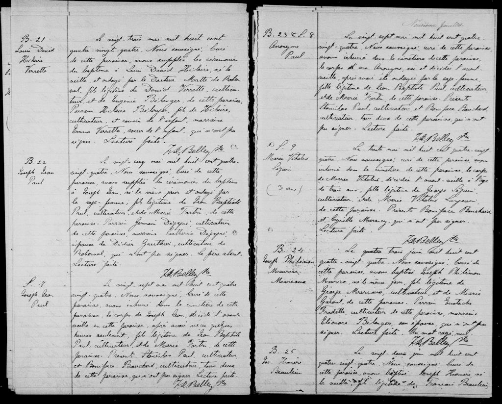 Saint-Prime, 1872-1922, Archives nationales à Saguenay, Fonds Cour supérieure. District judiciaire de Roberval. État civil, (02C,CE202,S4).