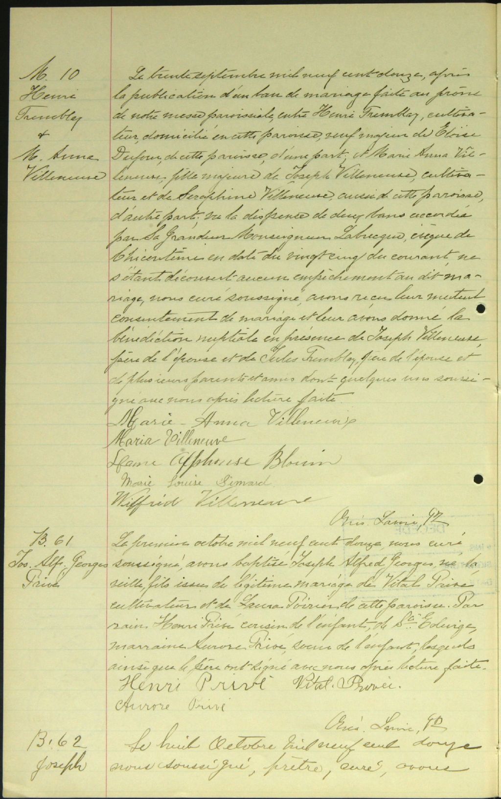 Saint-Prime, 1872-1922, Archives nationales à Saguenay, Fonds Cour supérieure. District judiciaire de Roberval. État civil, (02C,CE202,S4).