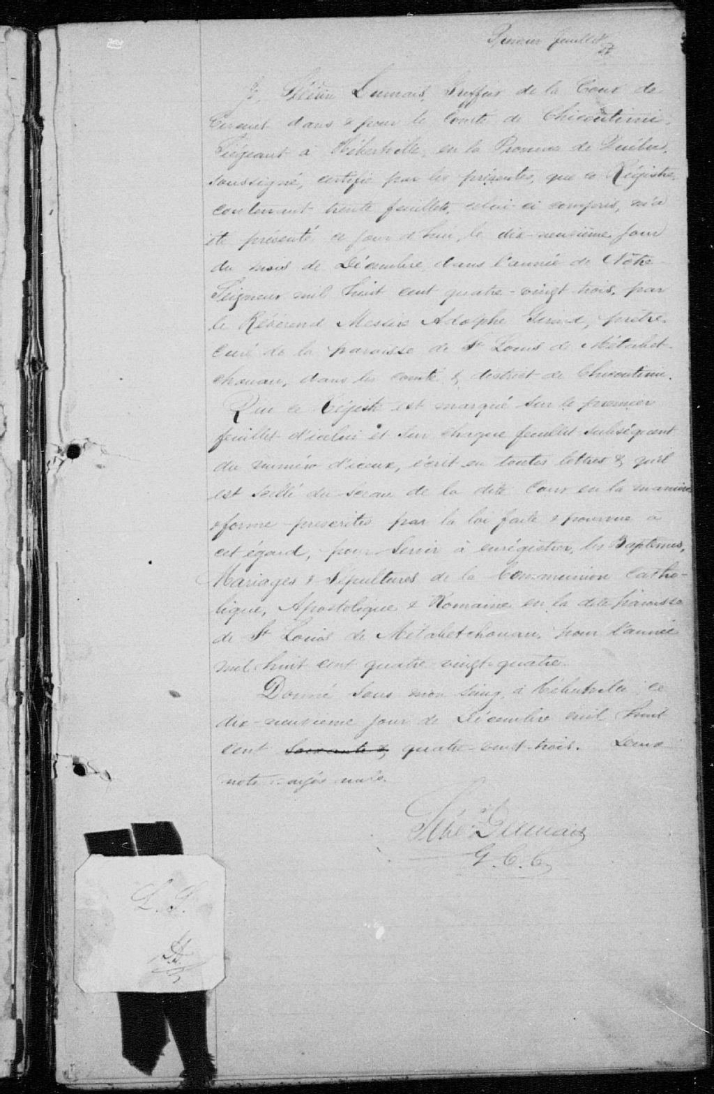 Saint-Louis-de-Métabetchouan / Saint-Louis-de-Chambord, 1872-1922, Archives nationales à Saguenay, Fonds Cour supérieure. District judiciaire de Roberval. État civil, (02C,CE202,S5).