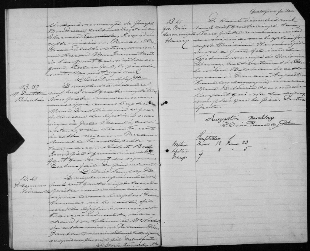 Saint-Gédéon, 1881-1922, Archives nationales à Saguenay, Fonds Cour supérieure. District judiciaire de Roberval. État civil, (02C,CE202,S6).