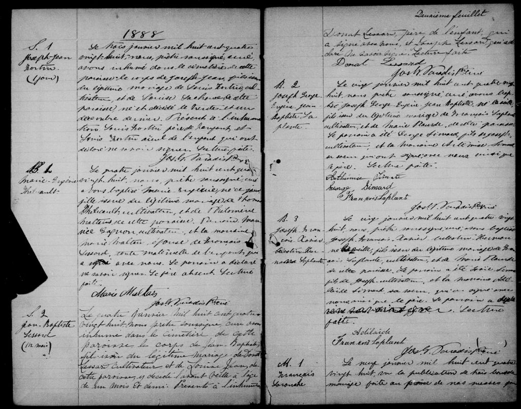 Saint-Gédéon, 1881-1922, Archives nationales à Saguenay, Fonds Cour supérieure. District judiciaire de Roberval. État civil, (02C,CE202,S6).