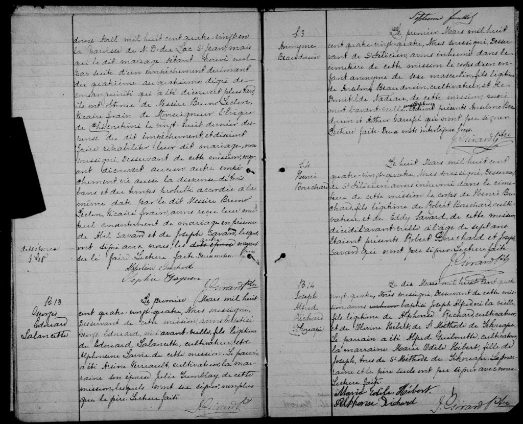 - Cette série regroupe les registres originaux de l'état civil, lesquels contiennent les enregistrements de baptêmes, de mariages et de sépultures consignés par le curé ou son représentant au cours de la période concernée par les documents.Outre les renseignements à caractère généalogique que nous pouvons y puiser, cette série peut constituer une source documentaire importante pour toute étude-statistique ou comparative sur les conditions de vie à différentes époques (mortalité infantile, espérance de vie) ou pour toute recherche portant sur l'occupation des terres (lieu de résidence), sur le mode vie (métiers et professions, statut et âge des époux), sur les classes sociales (titres des parties impliquées, témoins/amis/parents présents lors du mariage), sur des événements spéciaux (quelques mentions dans les sépultures) et sur des sujets à incidence médicale tels les maladies héréditaires (cause du décès)