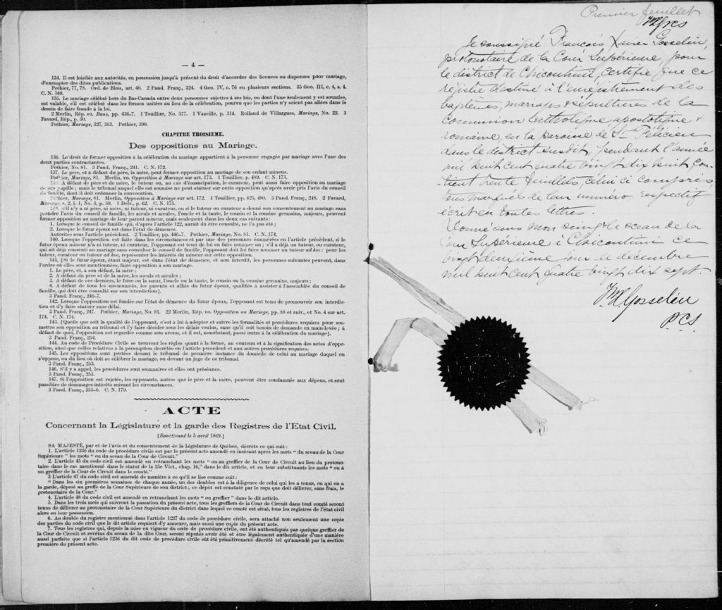- Cette série regroupe les registres originaux de l'état civil, lesquels contiennent les enregistrements de baptêmes, de mariages et de sépultures consignés par le curé ou son représentant au cours de la période concernée par les documents.Outre les renseignements à caractère généalogique que nous pouvons y puiser, cette série peut constituer une source documentaire importante pour toute étude-statistique ou comparative sur les conditions de vie à différentes époques (mortalité infantile, espérance de vie) ou pour toute recherche portant sur l'occupation des terres (lieu de résidence), sur le mode vie (métiers et professions, statut et âge des époux), sur les classes sociales (titres des parties impliquées, témoins/amis/parents présents lors du mariage), sur des événements spéciaux (quelques mentions dans les sépultures) et sur des sujets à incidence médicale tels les maladies héréditaires (cause du décès)