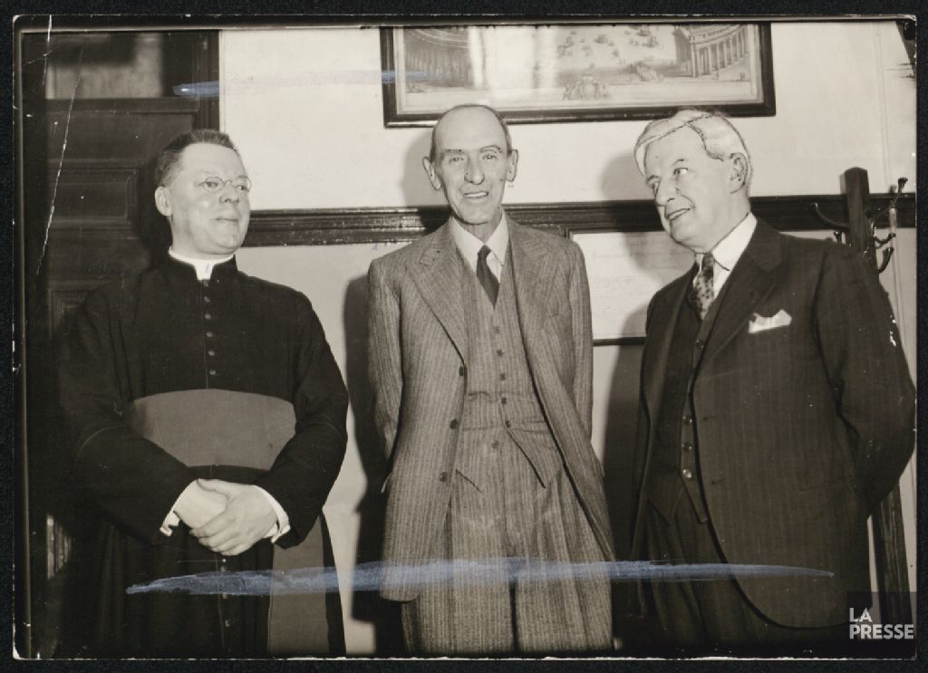 - Les documents montrent Édouard Montpetit accompagné notamment de Mgr Olivier Maurault, Émile Boucher, C.-P. Beaubien, Émile Lamarre, Victor Doré, Albert Mayrand, Omer Côté, Eudore Dubau, Éva Thibaudeau, Guy Vanier, Rolande Coderre, Monique Leboeuf, Yves Lasnier, Roméo Vézina et Guy Montpetit