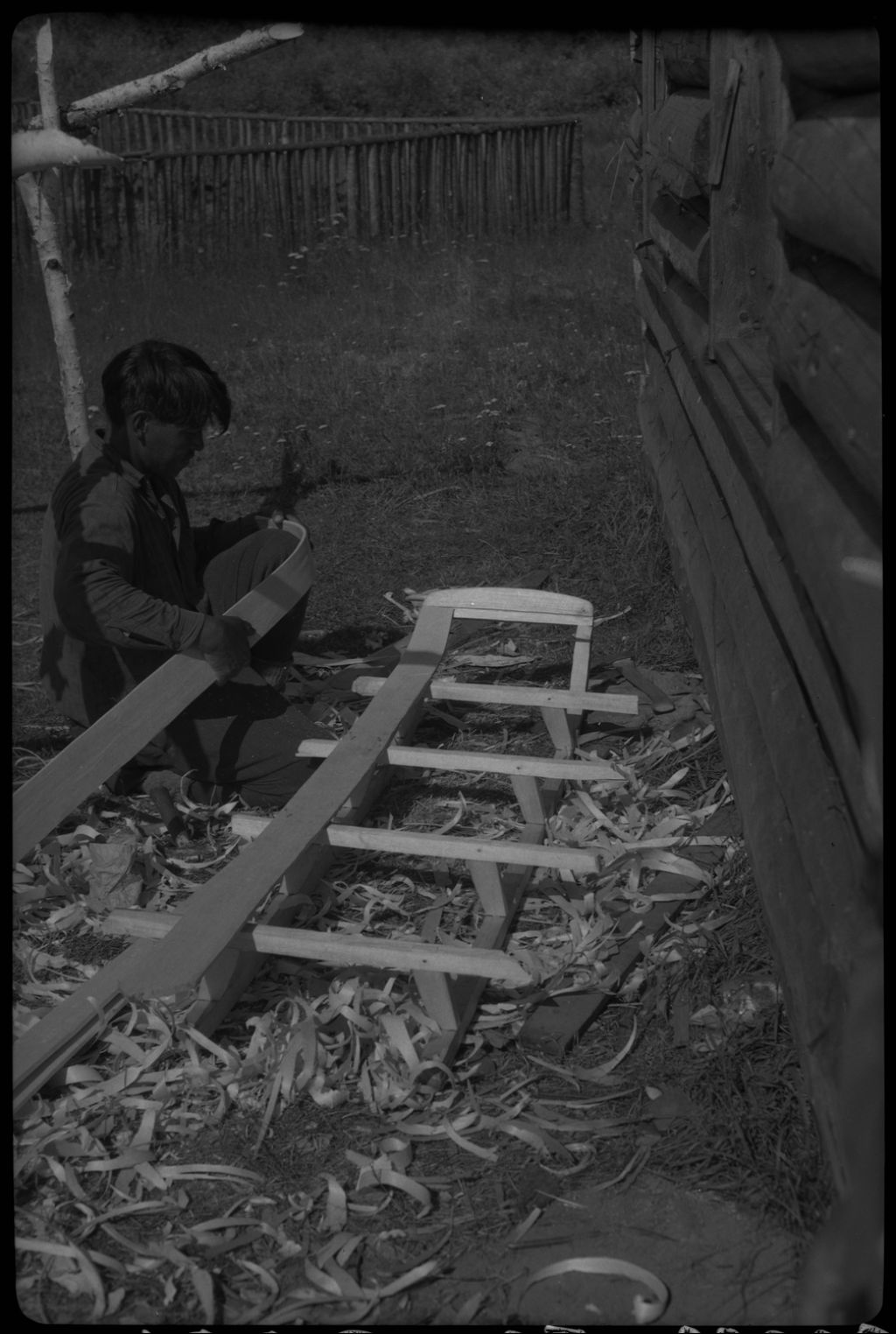 Amérindien confectionnant une traîne. Réserve indienne de Manouane