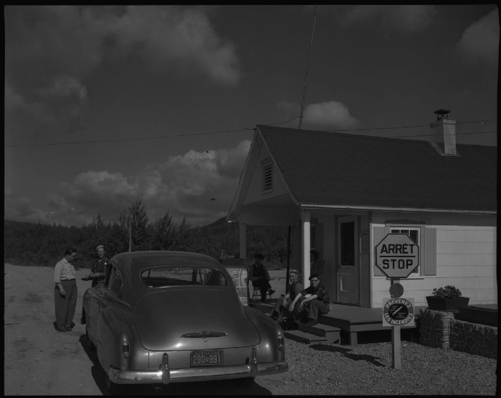 Première barrière à Réserve de Chibougamau, 1952, Archives nationales à Québec, Fonds Ministère de la Culture et des Communications, (03Q,E6,S7,SS1,D2,P92536), Neuville Bazin.