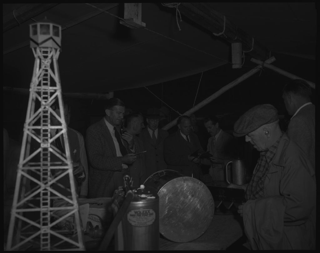 À l'occasion de la visite des délégués de la conférence sylvicole du Commonwealth britannique à l'Étape, Parc national des Laurentides, 1952, Archives nationales à Québec, Fonds Ministère de la Culture et des Communications, (03Q,E6,S7,SS1,D2,P92641), Neuville Bazin.