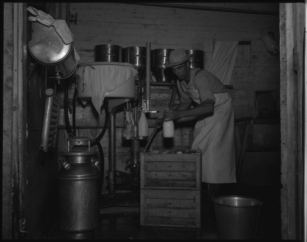 Rémi Paquet dans la laiterie. Saint-Côme, comté Beauce.