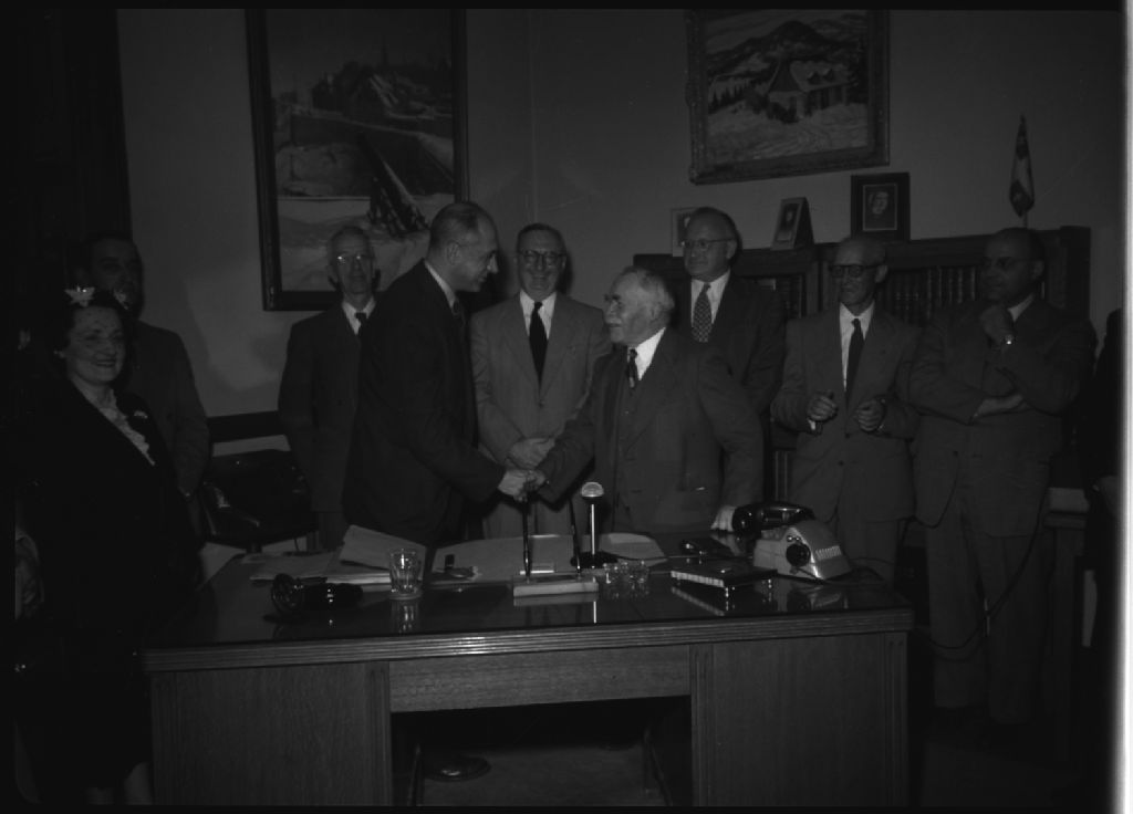 Monsieur J.P. Labarre félicite monsieur J. L. Pagé pour sa nomination au bureau du surintendant
