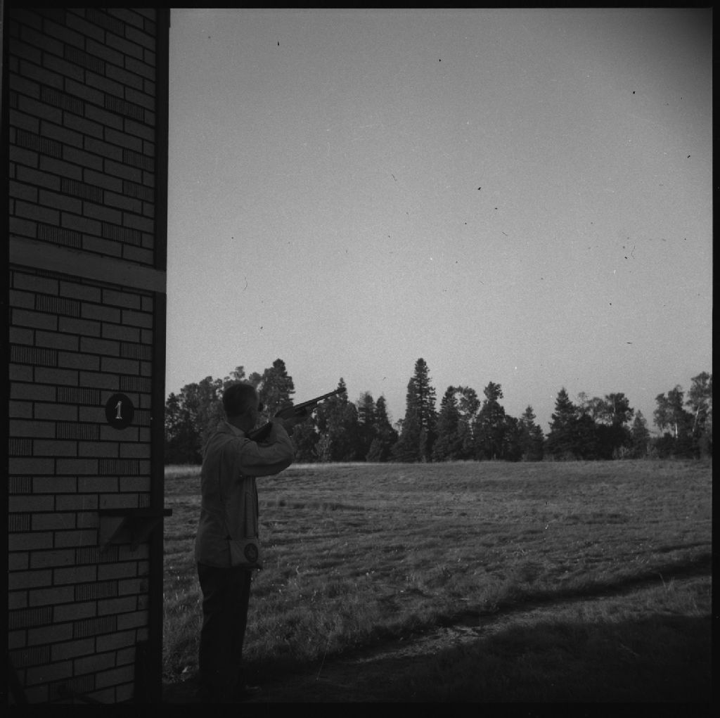 Tir au pigeon d'argile par les membres du Quebec Gun and Skeet Club au Kent House, 1952, Archives nationales à Québec, Fonds Ministère de la Culture et des Communications, (03Q,E6,S7,SS1,D2,P93017), Gustave Bédard.