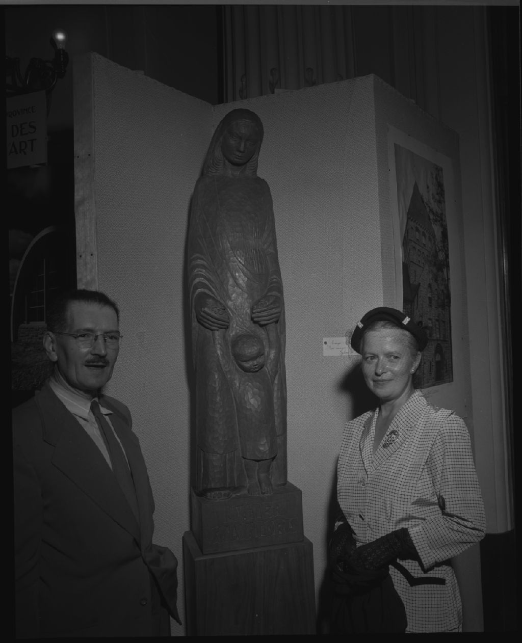 Exposition d'art religieux contemporain au Canada, organisée par l'Inventaire des oeuvres d'arts et la Faculté de Théologie de l'Université Laval tenue au café du Parlement du 28 août au 28 septembre 1952, 1952, Archives nationales à Québec, Fonds Ministère de la Culture et des Communications, (03Q,E6,S7,SS1,D2,P93027), Neuville Bazin.