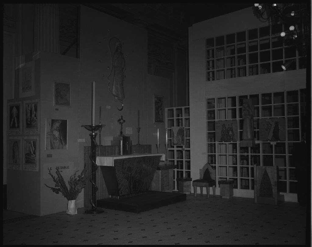 Exposition d'art religieux contemporain au Canada, organisée par l'Inventaire des oeuvres d'arts et la Faculté de Théologie de l'Université Laval tenue au café du Parlement du 28 août au 28 septembre 1952, 1952, Archives nationales à Québec, Fonds Ministère de la Culture et des Communications, (03Q,E6,S7,SS1,D2,P93036), Neuville Bazin.
