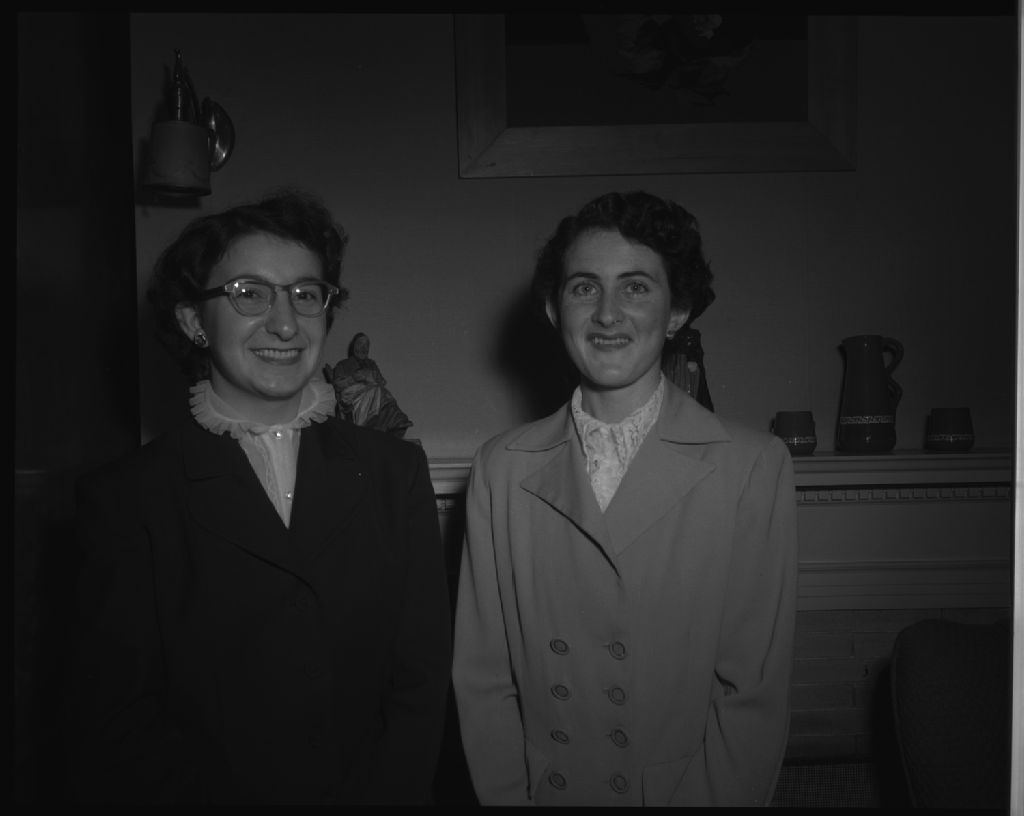 De gauche à droite : mesdemoiselles Gertrude Fortin et Dorothée Gagnon du cercle des jeunes agriculteurs de Saint-Côme, Beauce. Championnes aux éliminatoires provinciales, Art Culinaire pour 1952