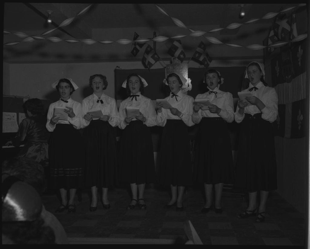 Banquet offert aux lauréats des jeunes du mérite agricole, Égide et Roch-Émile Beaudoin. Sainte-Hénédine., 1952, Archives nationales à Québec, Fonds Ministère de la Culture et des Communications, (03Q,E6,S7,SS1,D2,P93420), Omer Beaudoin.