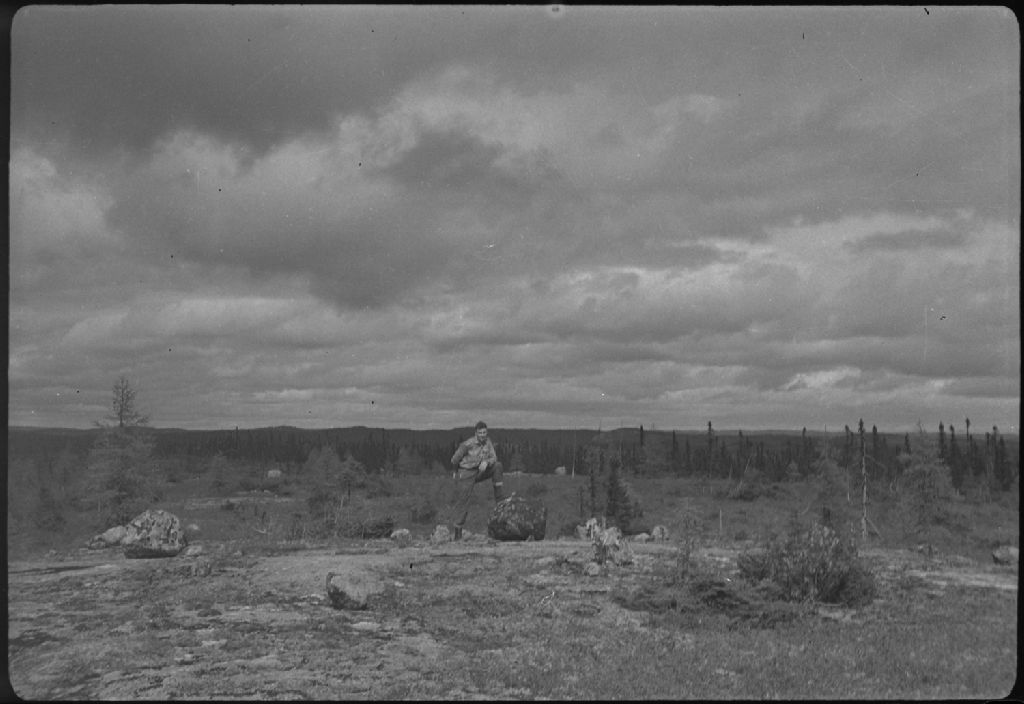 Looking east at Corneille road in south of Lake Ferland, eratic bulders on falt hilltop, Saguenay