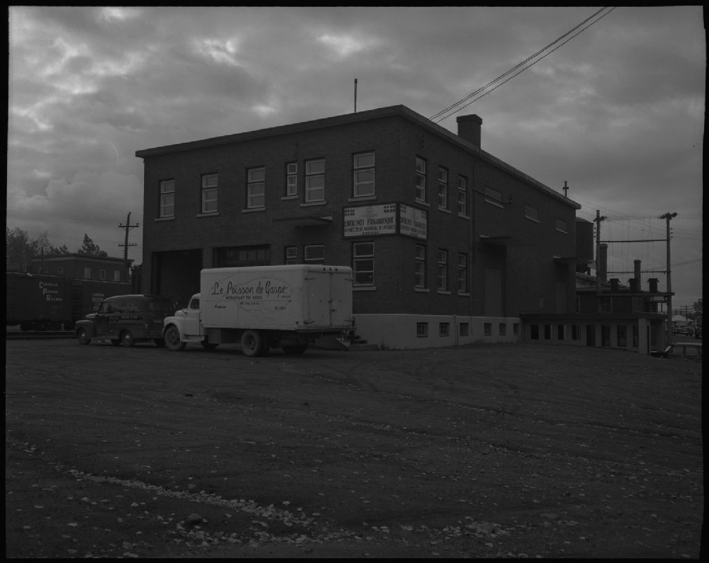 Entrepôt frigorifique de Rimouski, 1952, Archives nationales à Québec, Fonds Ministère de la Culture et des Communications, (03Q,E6,S7,SS1,D2,P93777), Gustave Bédard.