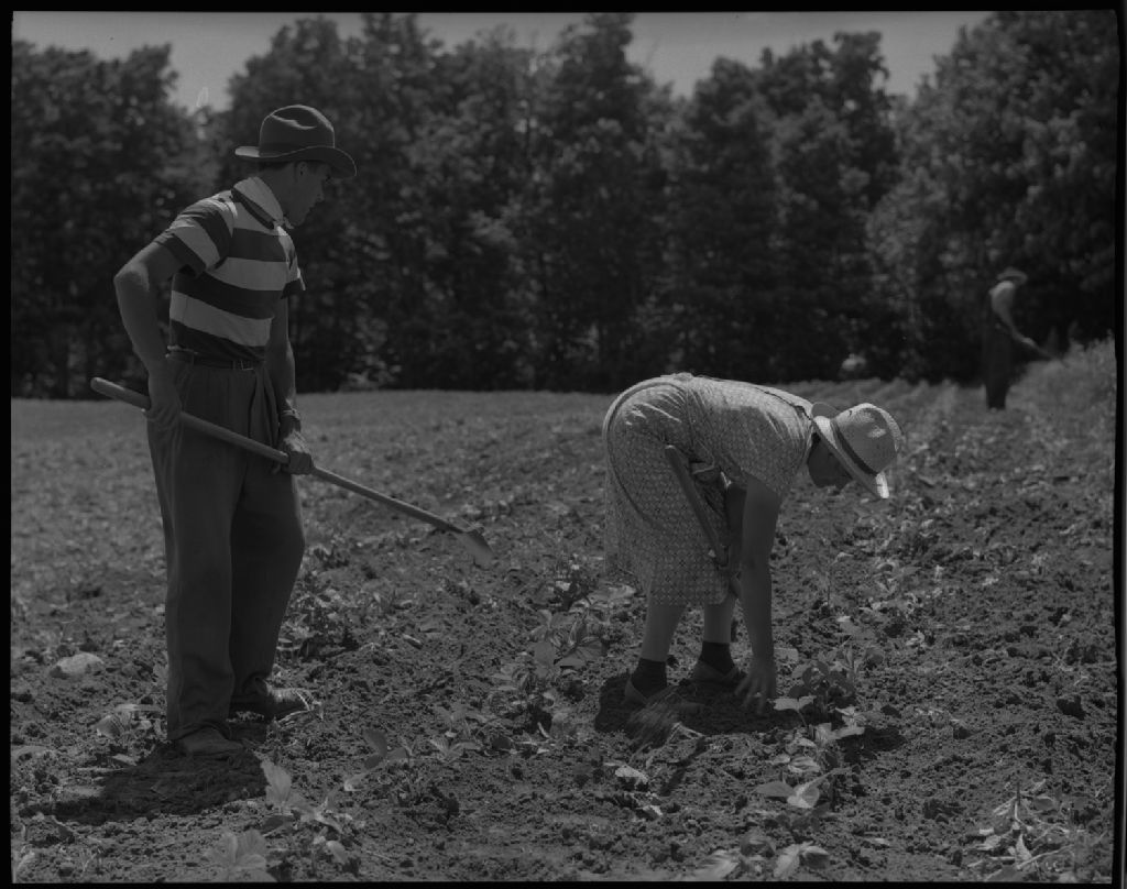 Sarclage chez Paul-Émile Fontaine. Weedon, comté Wolfe., 1952, Archives nationales à Québec, Fonds Ministère de la Culture et des Communications, (03Q,E6,S7,SS1,D2,P93797), Omer Beaudoin.