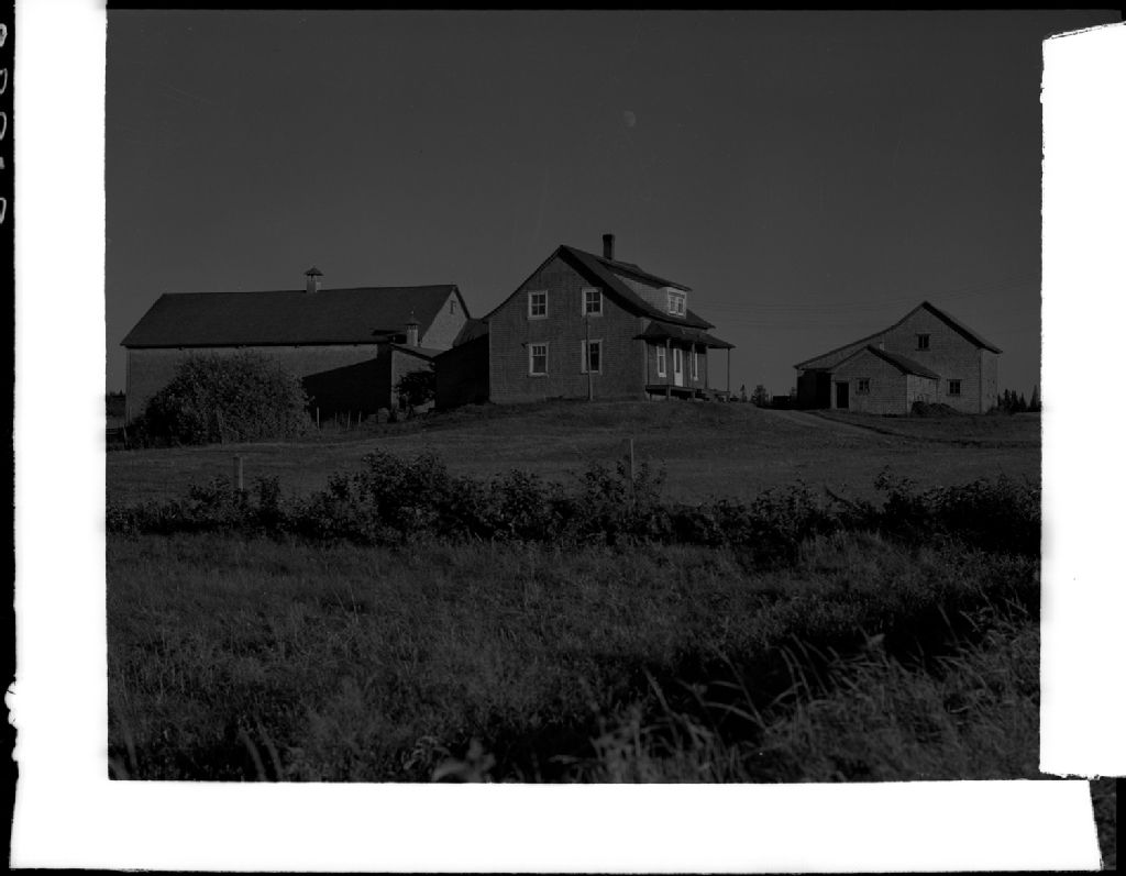 Ensemble de ferme chez Georges Poulin. Saint-Honoré-de-Shenley, comté Beauce., 1952, Archives nationales à Québec, Fonds Ministère de la Culture et des Communications, (03Q,E6,S7,SS1,D2,P93992), Omer Beaudoin.