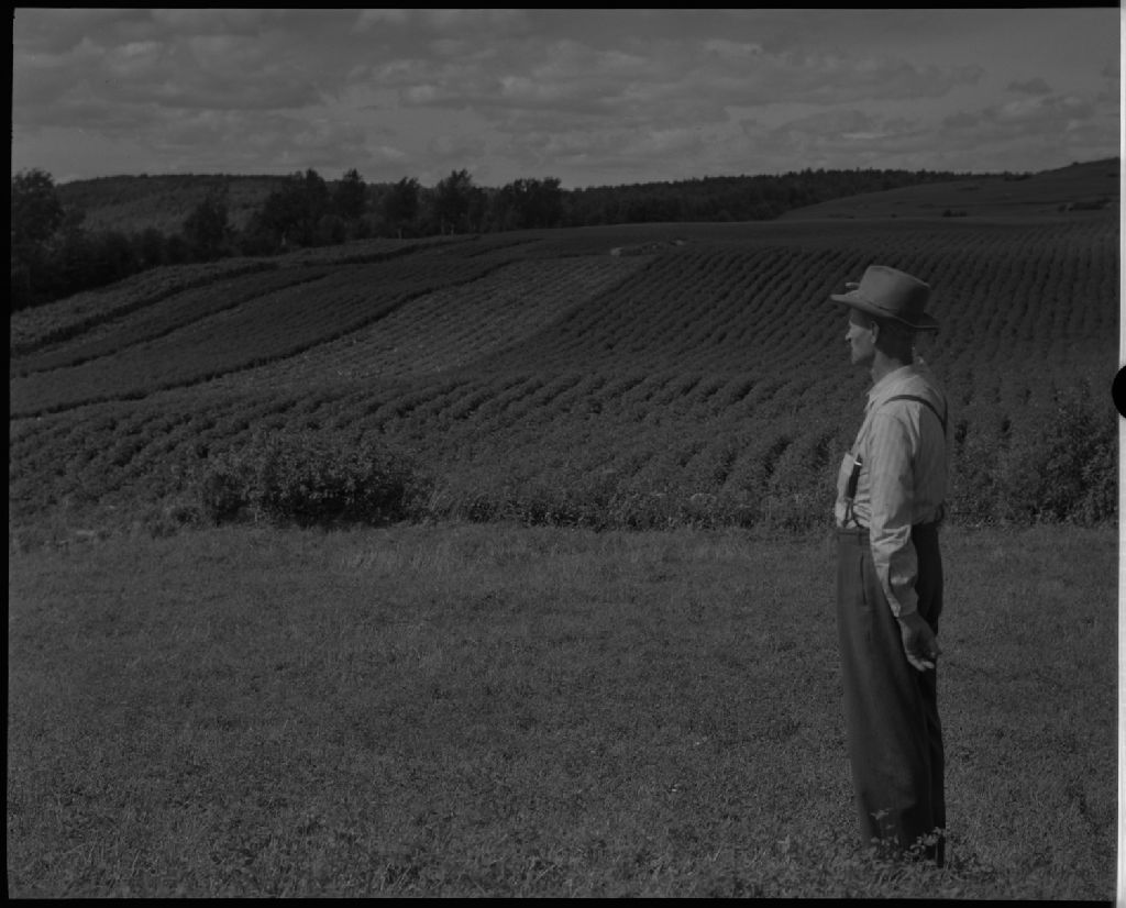 Thomas L. Pelletier regarde ses champs. Rivière-Bleue, comté Témiscouata.