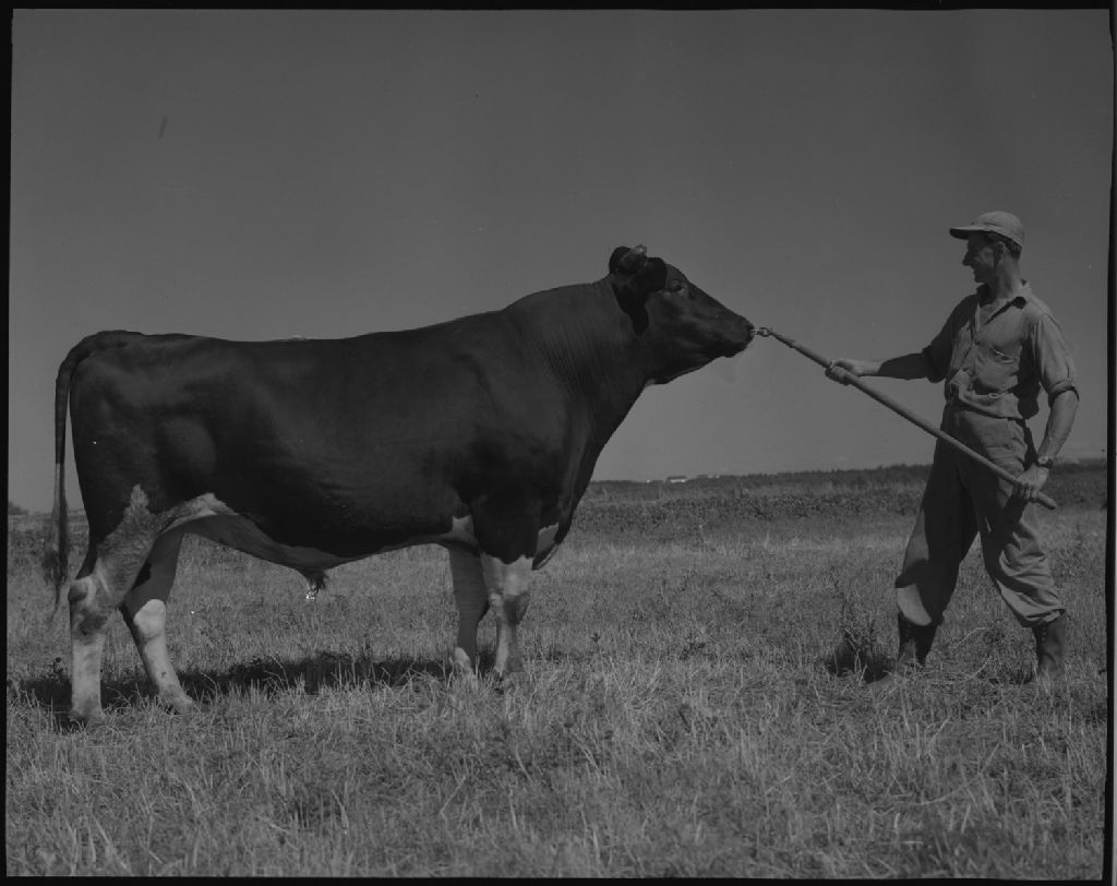 Taureau chez Fernand Dionne. Saint-Arsène, comté Rivière-du-Loup.