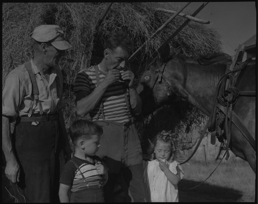 Pause pendant les foins chez Roger Blondeau. Sainte-Hélène, comté Kamouraska.