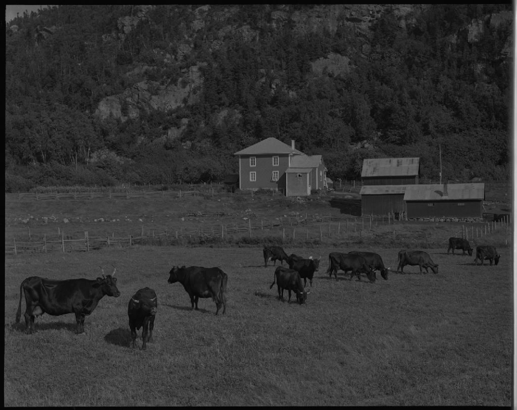 Troupeau canadien et ensemble de ferme chez Eusèbe Moreau. Saint-Philippe-de-Néri.