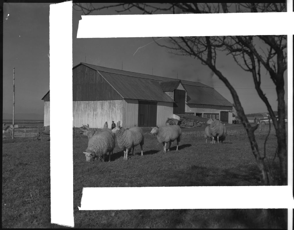 Grange et troupeau de moutons chez monsieur Gérard Laflamme à Saint-Anselme, comté de Dorchester