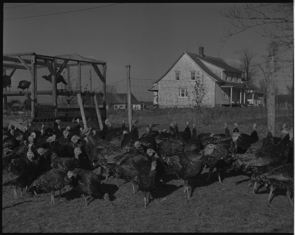 Élevage de dindons et l'arrière de la maison chez monsieur Gérard Laflamme à Saint-Anselme, comté de Dorchester