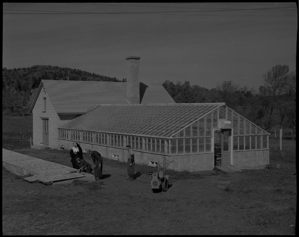 Serre à l'institut Chanoine Beaudet à Saint-Pascal, comté de Kamouraska, 1952, Archives nationales à Québec, Fonds Ministère de la Culture et des Communications, (03Q,E6,S7,SS1,D2,P94504), Omer Beaudoin.
