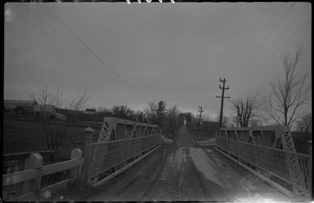 Pont Desmarais sur la rivière Moose à Sainte-Christine, comté de Bagot, 1952, Archives nationales à Québec, Fonds Ministère de la Culture et des Communications, (03Q,E6,S7,SS1,D2,P94679), Raymond Désy.
