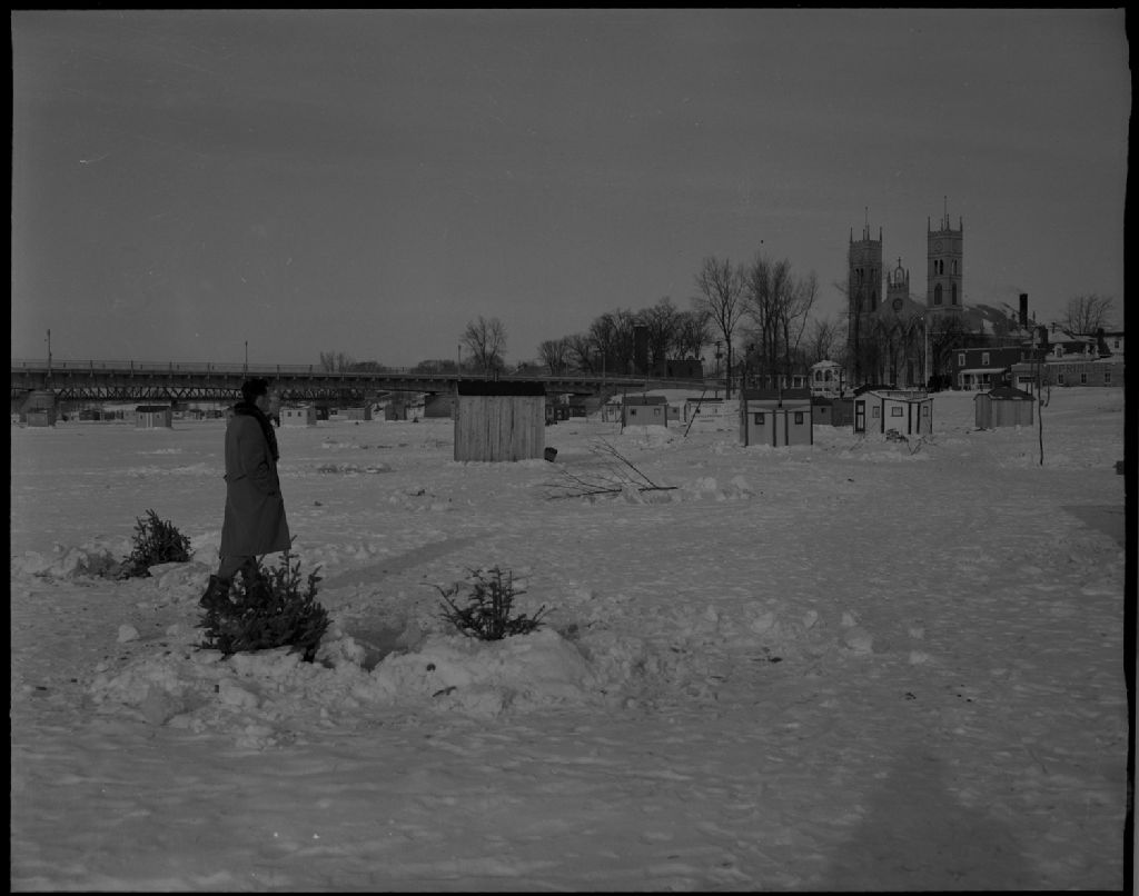 [Cabanes de pêche à Sainte-Anne-de-la-Pérade], [1953?], Archives nationales à Québec, Fonds Ministère de la Culture et des Communications, (03Q,E6,S7,SS1,D2,P94854), Photographe non identifié.