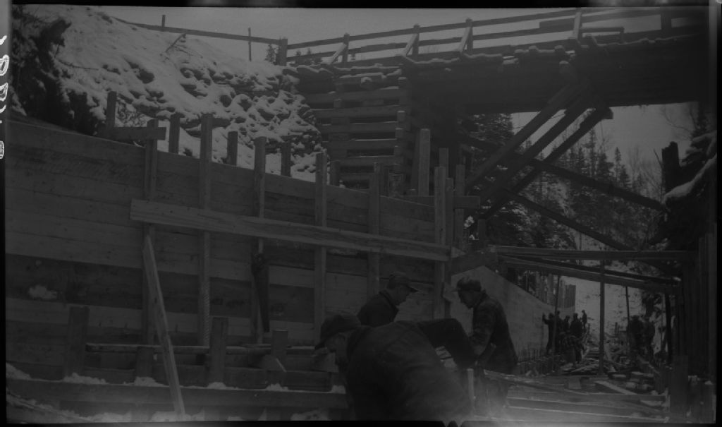 Construction d'un ponceau sur la propriété de Loyld Annett, Baie-de-Gaspé-Nord, comté de Gaspé-Sud, 1952, Archives nationales à Québec, Fonds Ministère de la Culture et des Communications, (03Q,E6,S7,SS1,D2,P94891), Jean Bastien.