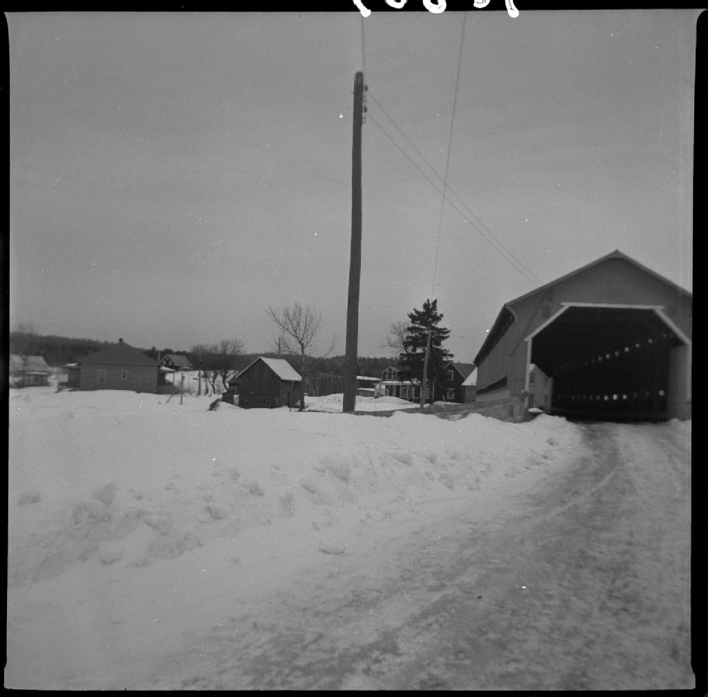 Pont du village sur la rivière du Loup. Concession des Trembles, lot 19. Hunterstown, comté Maskinongé., 1953, Archives nationales à Québec, Fonds Ministère de la Culture et des Communications, (03Q,E6,S7,SS1,D2,P95007), Edgar Gilbert.