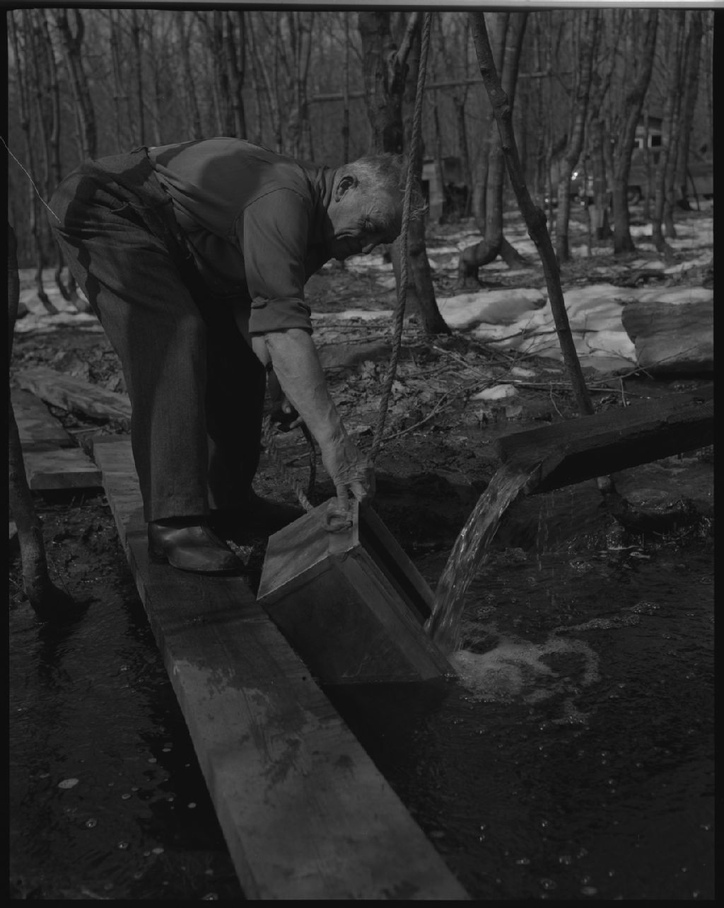 Partie de sucre des journalistes. Moyen de laver les casseroles, 1953, Archives nationales à Québec, Fonds Ministère de la Culture et des Communications, (03Q,E6,S7,SS1,D2,P95051), Omer Beaudoin.