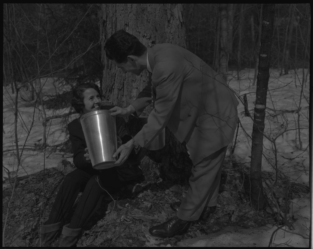Partie de sucre des journalistes, 1953, Archives nationales à Québec, Fonds Ministère de la Culture et des Communications, (03Q,E6,S7,SS1,D2,P95053), Omer Beaudoin.