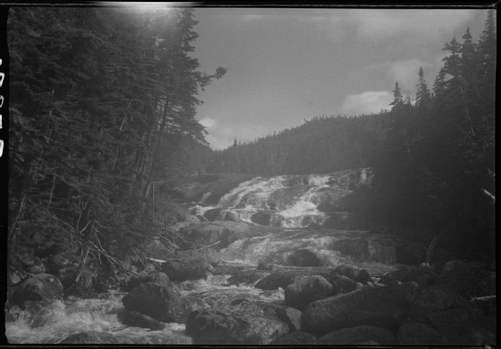 Falls at the mouth of the Sault Plat river, Delauney lake area, Saguenay