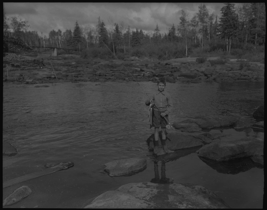 Excursion de pêche de monsieur Eustache Marier et ses fils à la pêche à la ouananiche à Saint-Félicien, 1953, Archives nationales à Québec, Fonds Ministère de la Culture et des Communications, (03Q,E6,S7,SS1,D2,P96052), Gustave Bédard.