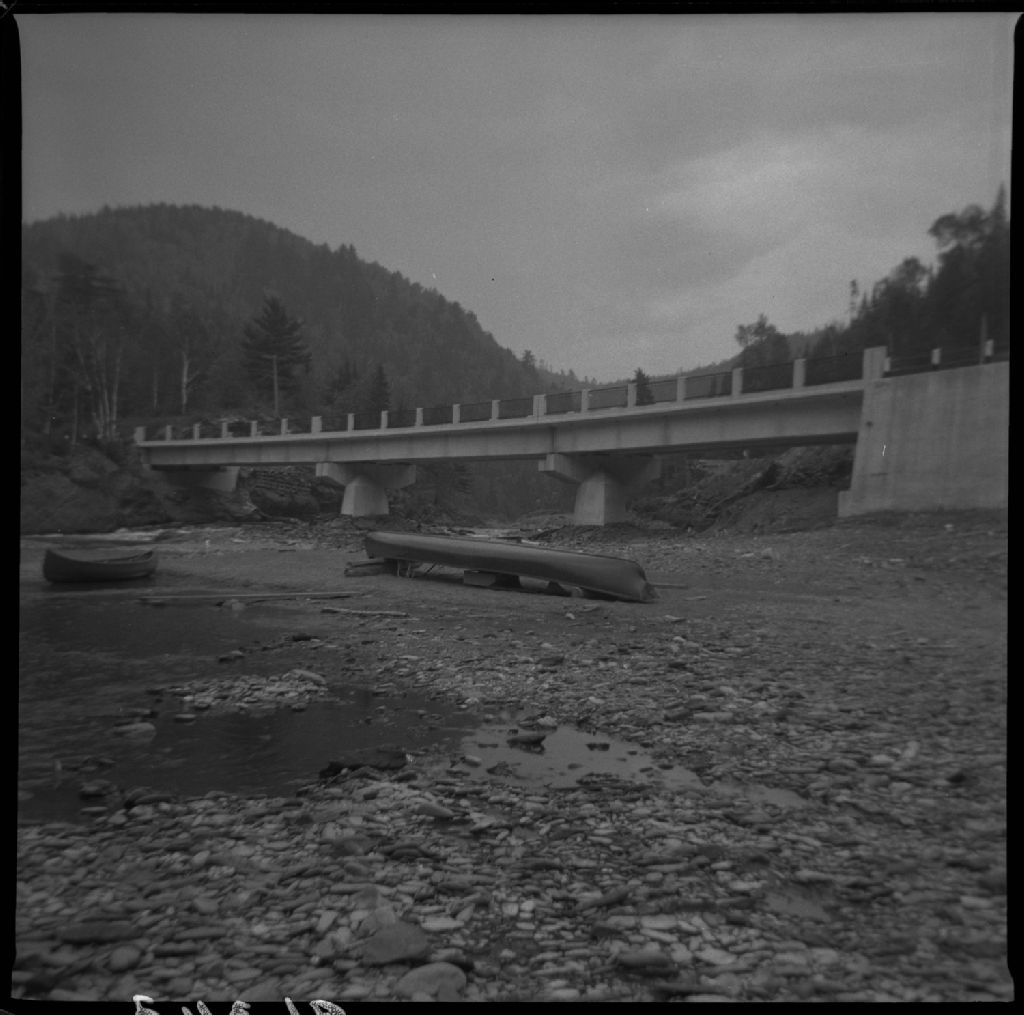 Pont Assemetquagan sur la rivière Assemetquagan, route 6. Canton Restigouche, comté Bonaventure., 1953, Archives nationales à Québec, Fonds Ministère de la Culture et des Communications, (03Q,E6,S7,SS1,D2,P96343), Edgar Gilbert.