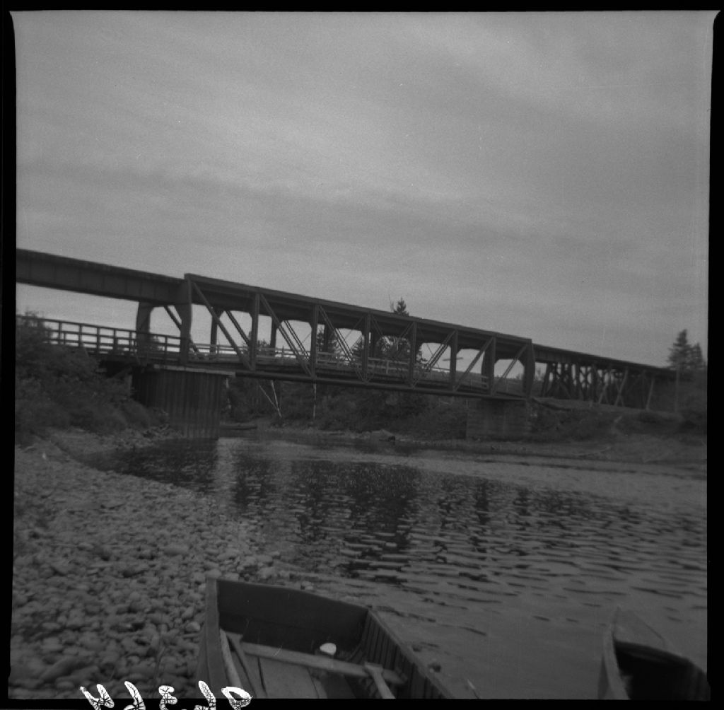 Pont sur la rivière Grande Cascapédia. Pont de chemin de fer Canadien National. Municipalités de Saint-Jules et Cascapédia, comté Bonaventure.