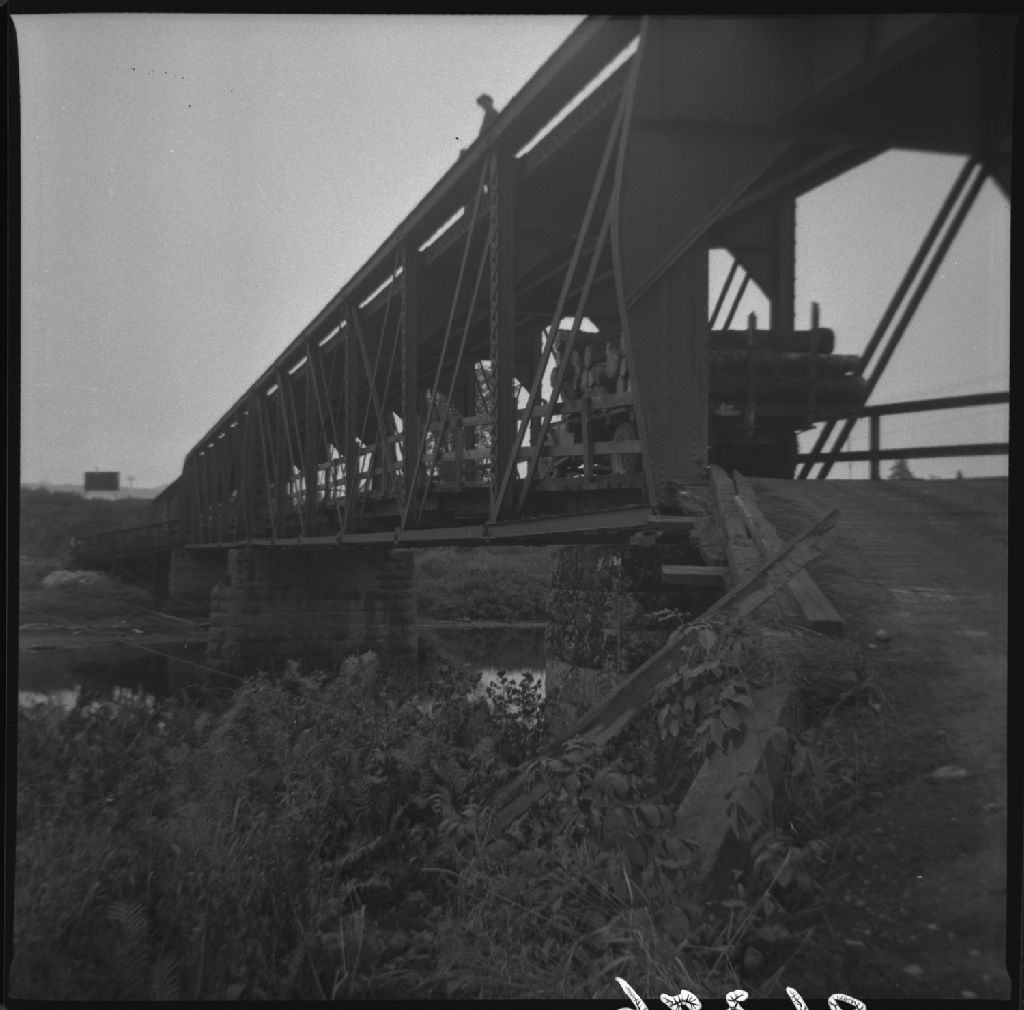 Pont sur la rivière Cascapédia, pont du chemin de fer Canadien National. Municipalités de Saint-Jules et Cascapédia, comté Bonaventure., 1953, Archives nationales à Québec, Fonds Ministère de la Culture et des Communications, (03Q,E6,S7,SS1,D2,P96376), Edgar Gilbert.