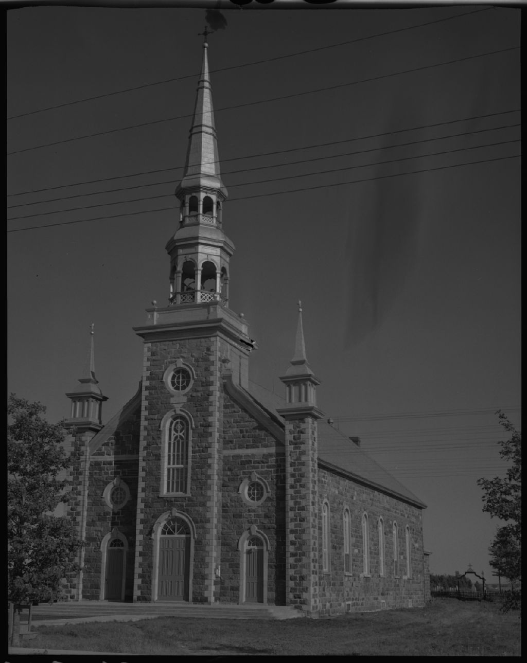 L'Église paroisse bâtie en 1909 à Sainte-Cécile de Lévrard, Nicolet, 1953, Archives nationales à Québec, Fonds Ministère de la Culture et des Communications, (03Q,E6,S7,SS1,D2,P96395), J.W.Michaud.