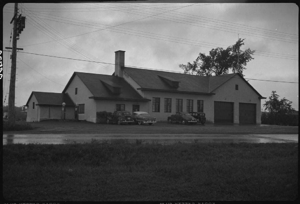 Garage, entrepôt et terrain de la voirie à Sainte-Thérèse-de-Blainville, comté de Terrebonne, 1953, Archives nationales à Québec, Fonds Ministère de la Culture et des Communications, (03Q,E6,S7,SS1,D2,P96732), L.E. Beaulieu.