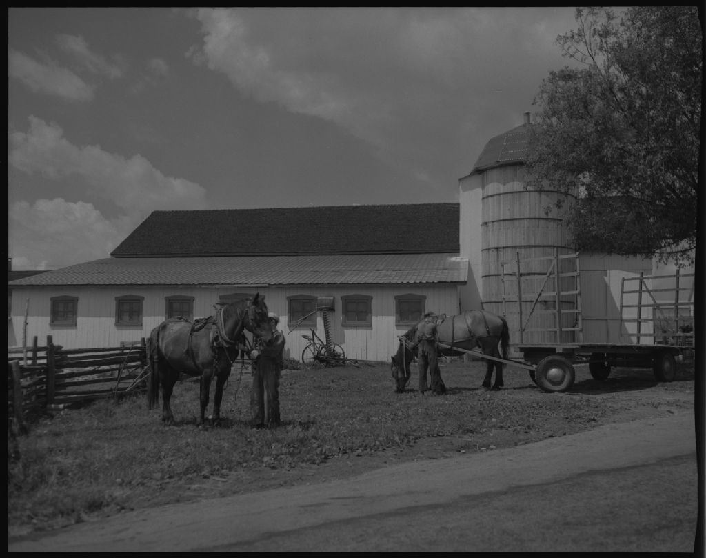Départ pour les foins chez monsieur Paul Mercure à Cap-Santé, comté de Portneuf, 1953, Archives nationales à Québec, Fonds Ministère de la Culture et des Communications, (03Q,E6,S7,SS1,D2,P96842), Omer Beaudoin.