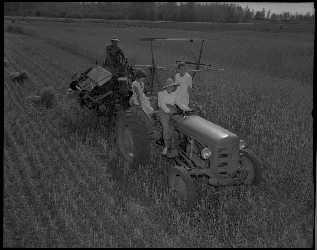 Récolte du blé sur la ferme de monsieur Jos. Trépanier à Médelec, comté de Témiscamingue, 1953, Archives nationales à Québec, Fonds Ministère de la Culture et des Communications, (03Q,E6,S7,SS1,D2,P96848), Omer Beaudoin.